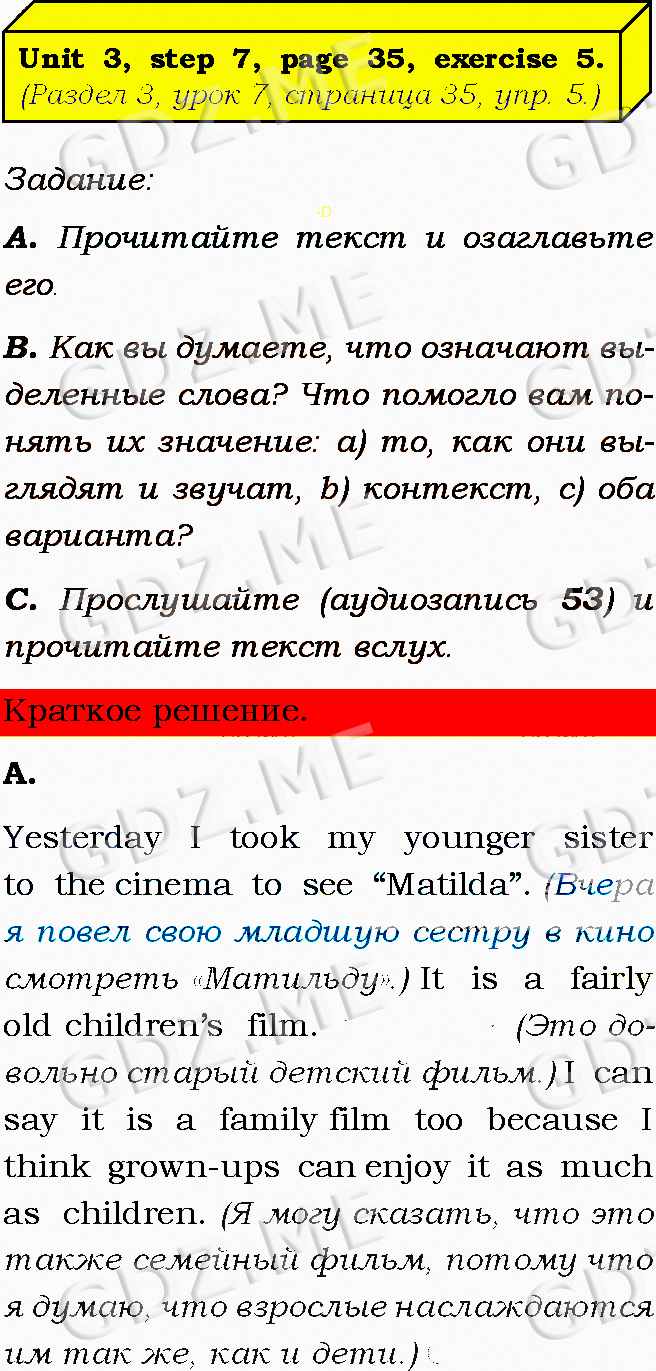 Подробный вариант решения из решебника (ГДЗ): Задание номер 5 (Unit 2. Unit 3. Step 7) по предмету Английский язык, за 8 класс, авторы учебника О.В. Афанасьева, И.В. Михеева, К.М. Баранова.