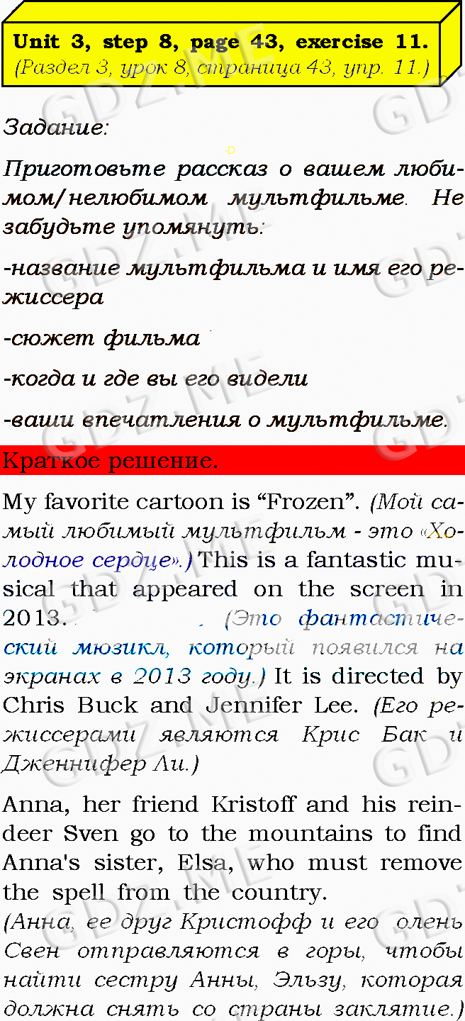 Подробный вариант решения из решебника (ГДЗ): Задание номер 11 (Unit 2. Unit 3. Step 8) по предмету Английский язык, за 8 класс, авторы учебника О.В. Афанасьева, И.В. Михеева, К.М. Баранова.