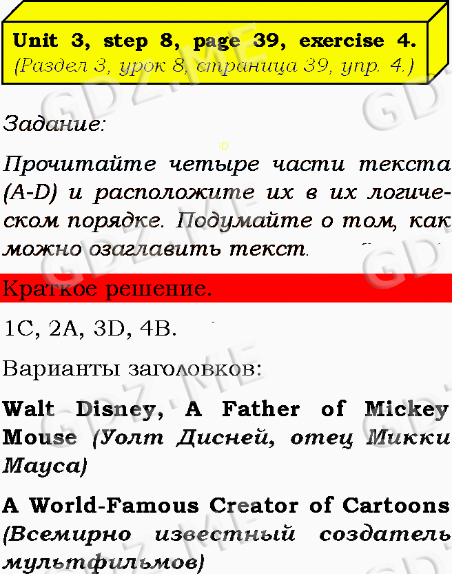 Подробный вариант решения из решебника (ГДЗ): Задание номер 4 (Unit 2. Unit 3. Step 8) по предмету Английский язык, за 8 класс, авторы учебника О.В. Афанасьева, И.В. Михеева, К.М. Баранова.