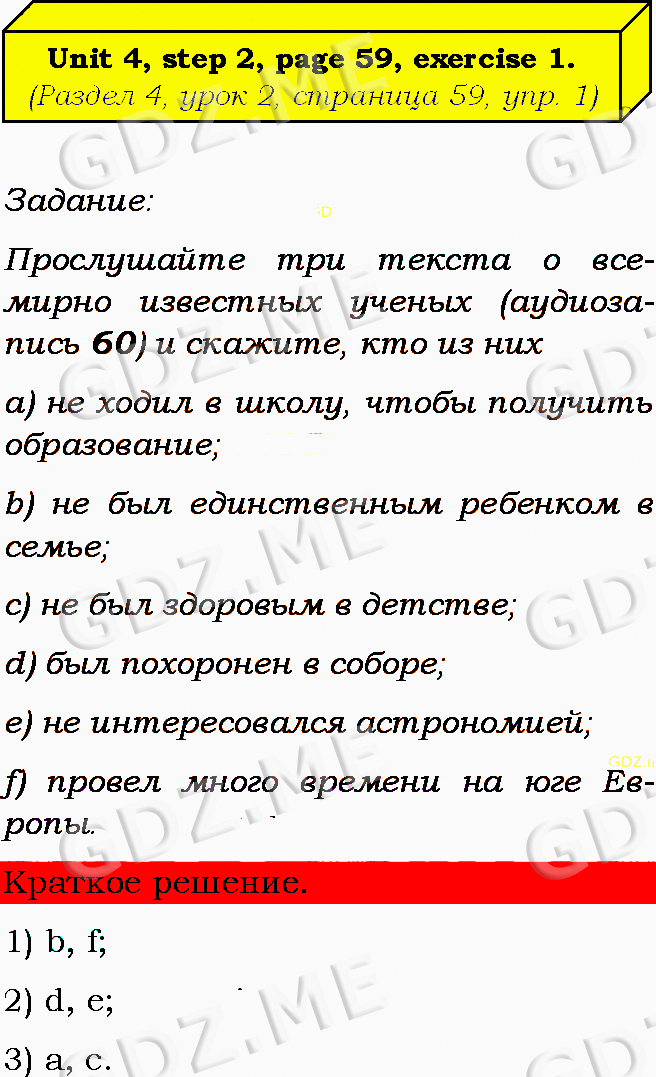 Подробный вариант решения из решебника (ГДЗ): Задание номер 1 (Unit 3. Unit 4. Step 2) по предмету Английский язык, за 8 класс, авторы учебника О.В. Афанасьева, И.В. Михеева, К.М. Баранова.