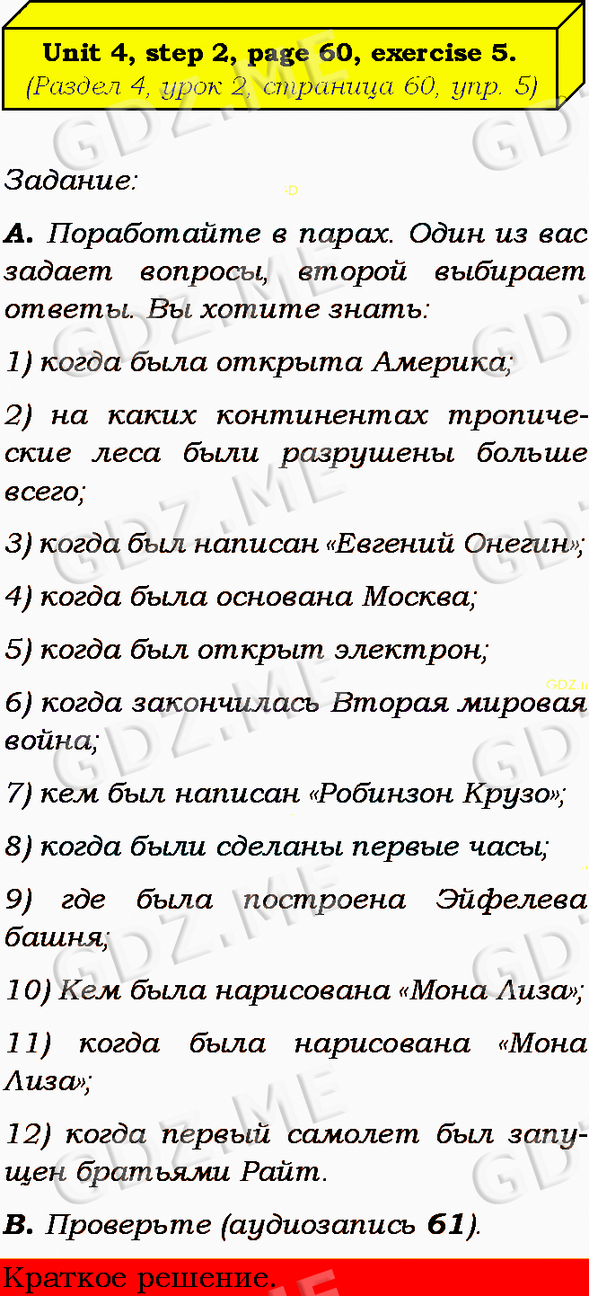 Подробный вариант решения из решебника (ГДЗ): Задание номер 5 (Unit 3. Unit 4. Step 2) по предмету Английский язык, за 8 класс, авторы учебника О.В. Афанасьева, И.В. Михеева, К.М. Баранова.