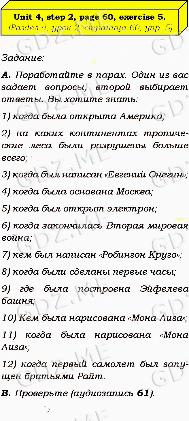 Подробный вариант решения из решебника (ГДЗ): Задание номер 5_4 (Unit 3. Unit 4. Step 2) по предмету Английский язык, за 8 класс, авторы учебника О.В. Афанасьева, И.В. Михеева, К.М. Баранова.