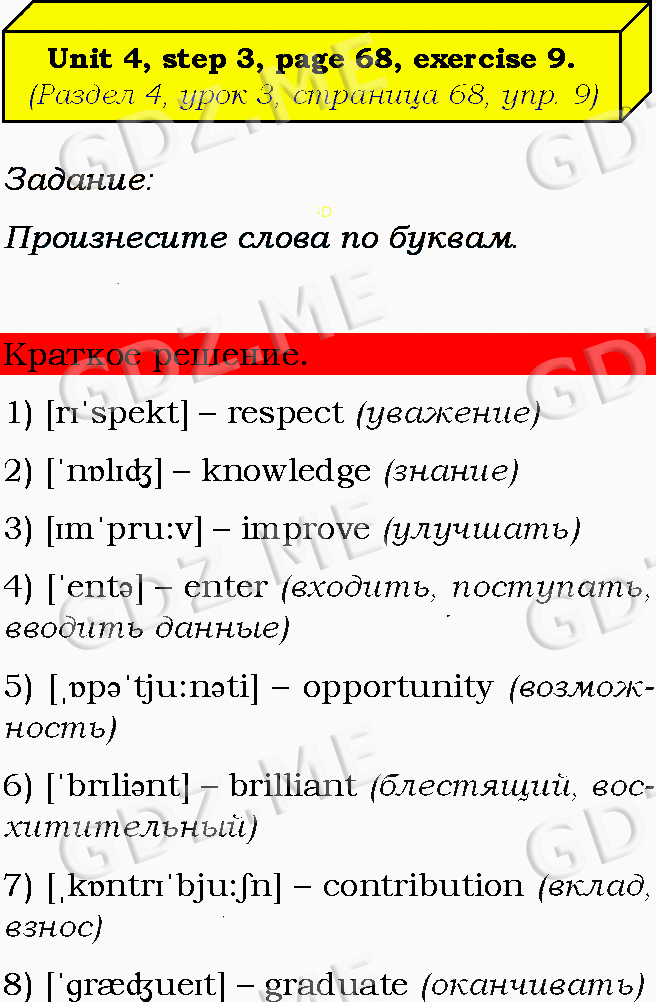 Подробный вариант решения из решебника (ГДЗ): Задание номер 9 (Unit 3. Unit 4. Step 3) по предмету Английский язык, за 8 класс, авторы учебника О.В. Афанасьева, И.В. Михеева, К.М. Баранова.