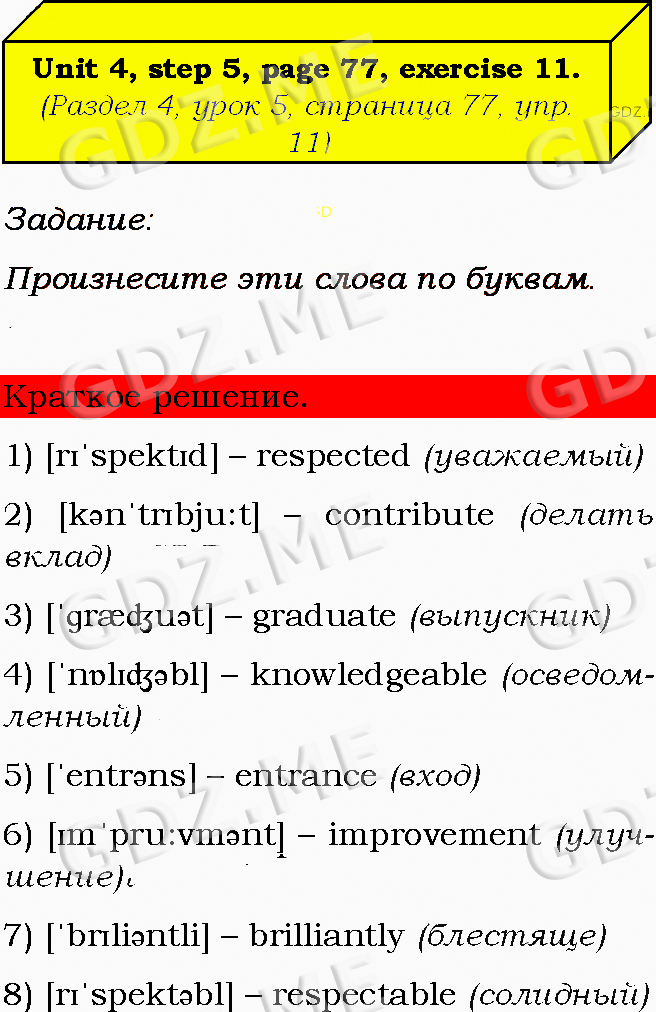 Подробный вариант решения из решебника (ГДЗ): Задание номер 11 (Unit 3. Unit 4. Step 5) по предмету Английский язык, за 8 класс, авторы учебника О.В. Афанасьева, И.В. Михеева, К.М. Баранова.