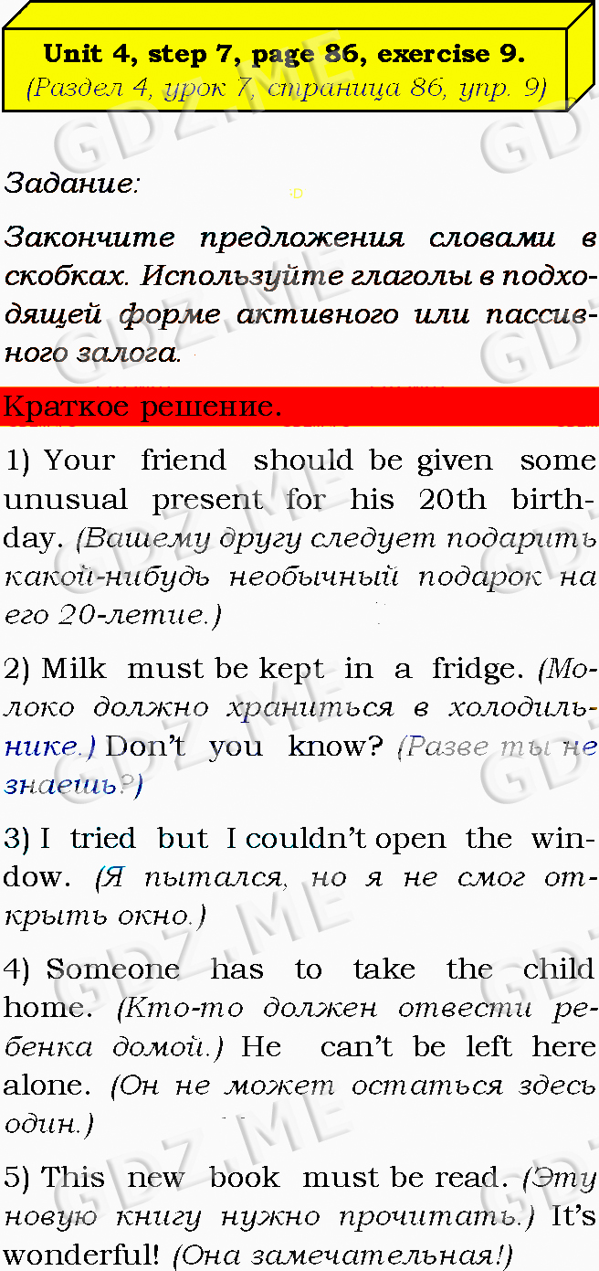 Подробный вариант решения из решебника (ГДЗ): Задание номер 9 (Unit 3. Unit 4. Step 7) по предмету Английский язык, за 8 класс, авторы учебника О.В. Афанасьева, И.В. Михеева, К.М. Баранова.