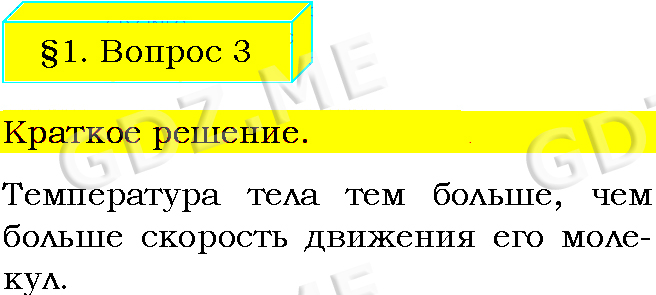 Подробный вариант решения из решебника (ГДЗ): Задание номер 3 (§1. Тепловое движение. Температура. Вопросы) по предмету Физика, за 8 класс, авторы учебника Пёрышкин А.В..