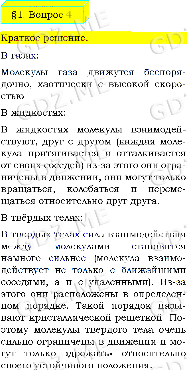Подробный вариант решения из решебника (ГДЗ): Задание номер 4 (§1. Тепловое движение. Температура. Вопросы) по предмету Физика, за 8 класс, авторы учебника Пёрышкин А.В..