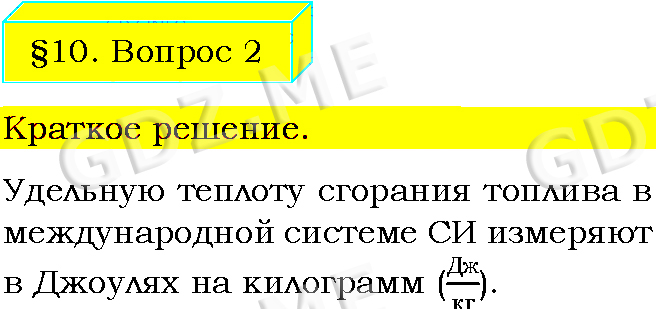 Подробный вариант решения из решебника (ГДЗ): Задание номер 2 (§10. Энергия топлива. Удельная теплота сгорания. Вопросы) по предмету Физика, за 8 класс, авторы учебника Пёрышкин А.В..