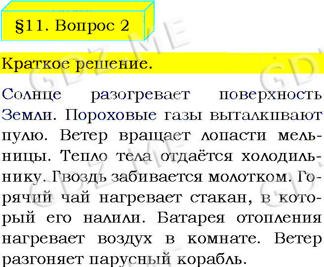 Подробный вариант решения из решебника (ГДЗ): Задание номер 2 (§11. Закон сохранения и превращения энергии в механических и тепловых процессах. Вопросы) по предмету Физика, за 8 класс, авторы учебника Пёрышкин А.В..