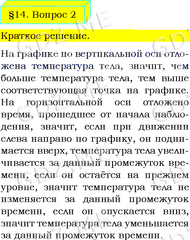 Подробный вариант решения из решебника (ГДЗ): Задание номер 2 (§14. График плавления и отвердевания кристаллических тел. Вопросы) по предмету Физика, за 8 класс, авторы учебника Пёрышкин А.В..
