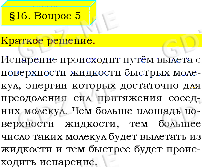Подробный вариант решения из решебника (ГДЗ): Задание номер 5 (§16. Испарение. Насыщенный и ненасыщенный пар. Вопросы) по предмету Физика, за 8 класс, авторы учебника Пёрышкин А.В..