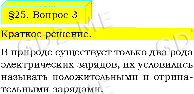 Подробный вариант решения из решебника (ГДЗ): Задание номер 3 (§25. Электризация тел при соприкосновении. Взаимодействие заряженных тел. Вопросы) по предмету Физика, за 8 класс, авторы учебника Пёрышкин А.В..