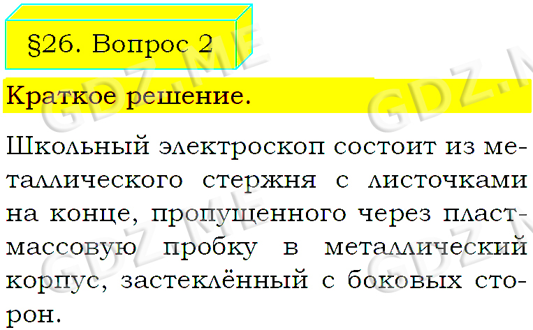 Подробный вариант решения из решебника (ГДЗ): Задание номер 2 (§26. Электроскоп. Вопросы) по предмету Физика, за 8 класс, авторы учебника Пёрышкин А.В..