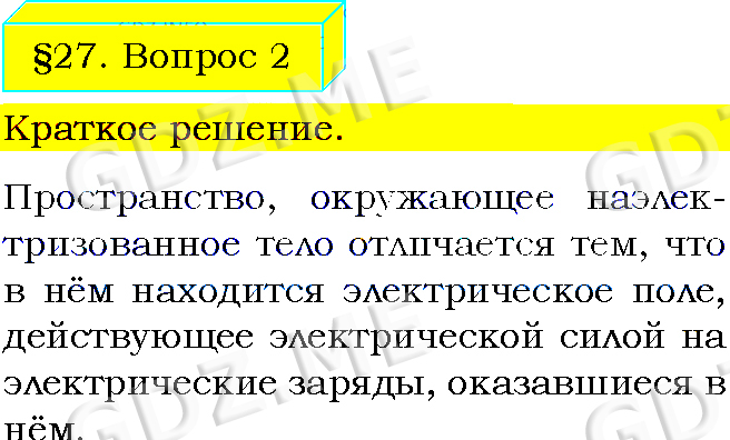 Подробный вариант решения из решебника (ГДЗ): Задание номер 2 (§27. Электрическое поле. Вопросы) по предмету Физика, за 8 класс, авторы учебника Пёрышкин А.В..
