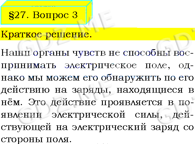Подробный вариант решения из решебника (ГДЗ): Задание номер 3 (§27. Электрическое поле. Вопросы) по предмету Физика, за 8 класс, авторы учебника Пёрышкин А.В..