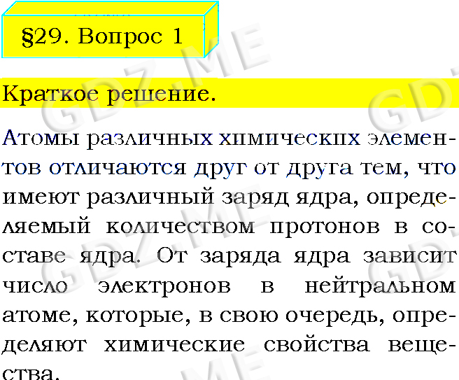 Подробный вариант решения из решебника (ГДЗ): Задание номер 1 (§29. Строение атомов. Вопросы) по предмету Физика, за 8 класс, авторы учебника Пёрышкин А.В..