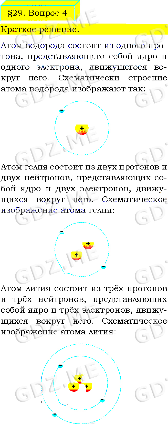 Подробный вариант решения из решебника (ГДЗ): Задание номер 4 (§29. Строение атомов. Вопросы) по предмету Физика, за 8 класс, авторы учебника Пёрышкин А.В..