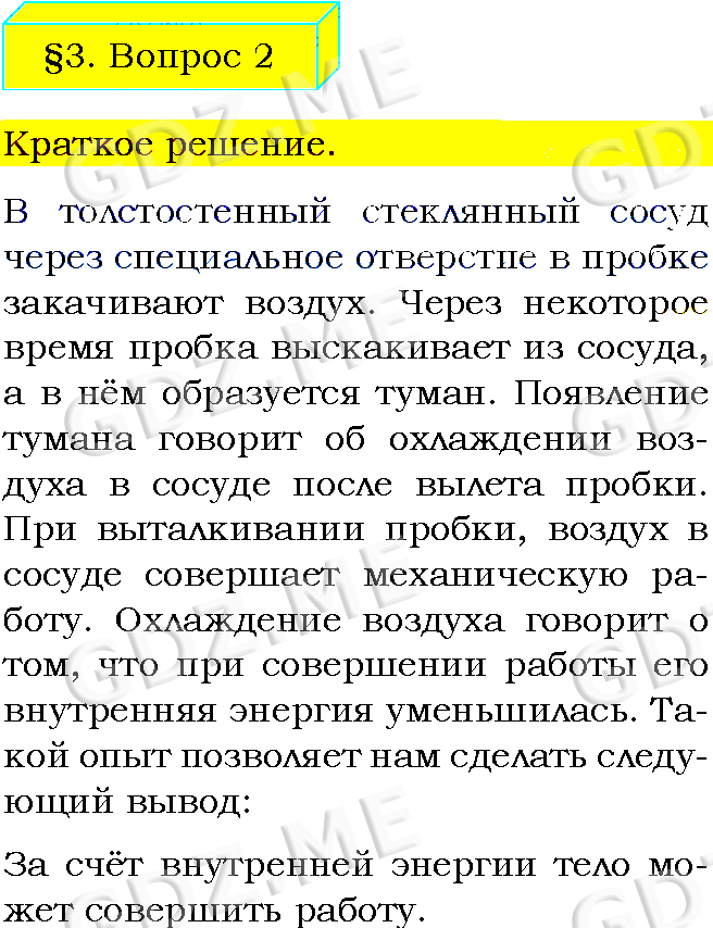 Подробный вариант решения из решебника (ГДЗ): Задание номер 2 (§3. Способы изменения внутренней энергии тела. Вопросы) по предмету Физика, за 8 класс, авторы учебника Пёрышкин А.В..