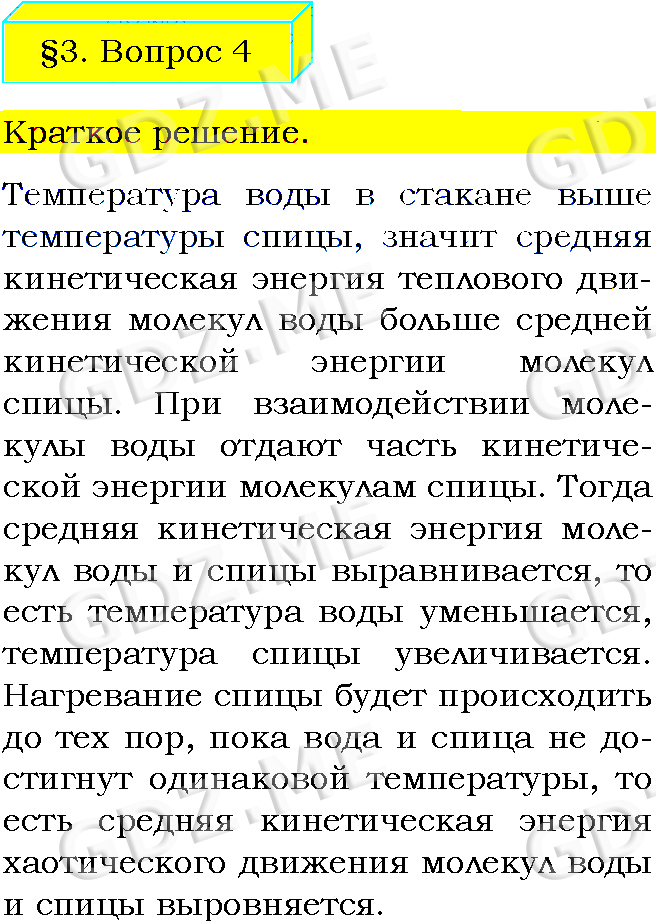 Подробный вариант решения из решебника (ГДЗ): Задание номер 4 (§3. Способы изменения внутренней энергии тела. Вопросы) по предмету Физика, за 8 класс, авторы учебника Пёрышкин А.В..