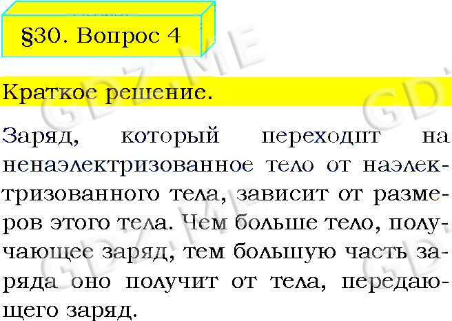 Подробный вариант решения из решебника (ГДЗ): Задание номер 4 (§30. Объяснение электрических явлений. Вопросы) по предмету Физика, за 8 класс, авторы учебника Пёрышкин А.В..