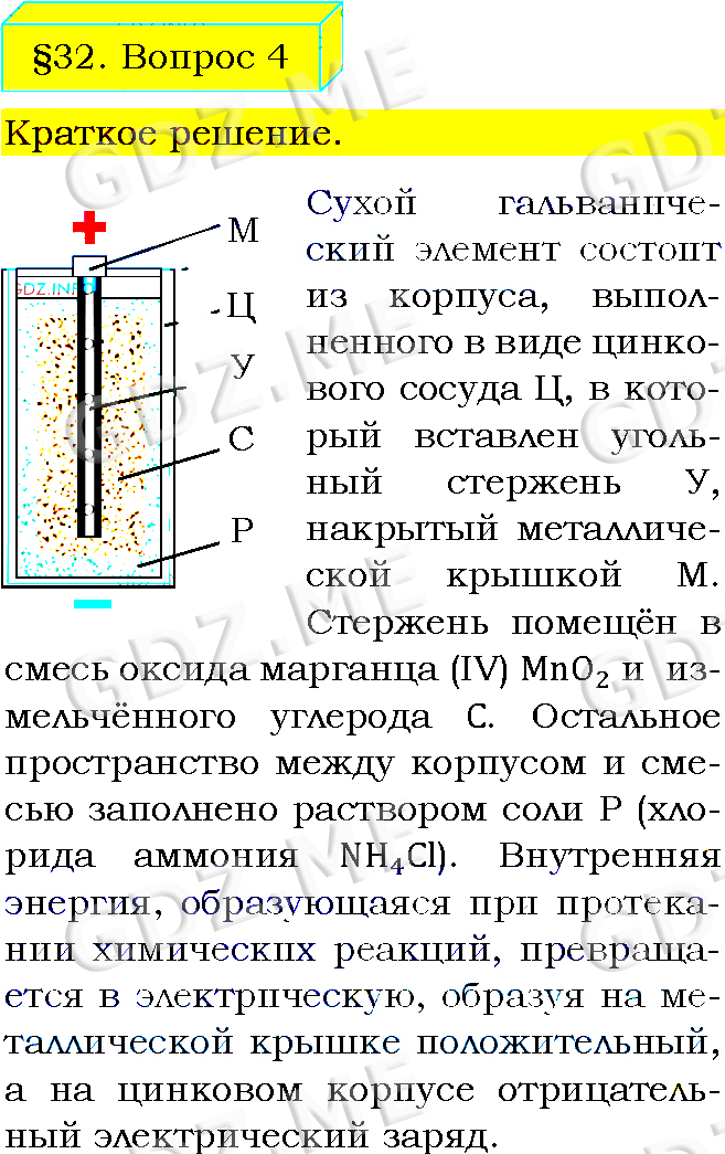 Подробный вариант решения из решебника (ГДЗ): Задание номер 4 (§32. Электрический ток. Источники электрического тока. Вопросы) по предмету Физика, за 8 класс, авторы учебника Пёрышкин А.В..