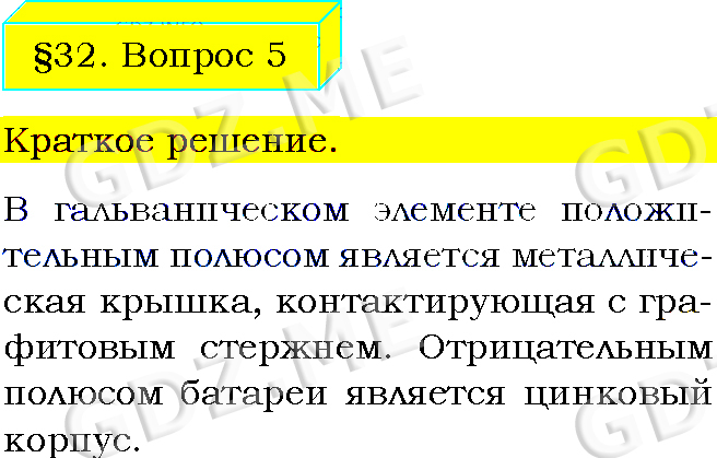 Подробный вариант решения из решебника (ГДЗ): Задание номер 5 (§32. Электрический ток. Источники электрического тока. Вопросы) по предмету Физика, за 8 класс, авторы учебника Пёрышкин А.В..