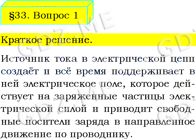 Подробный вариант решения из решебника (ГДЗ): Задание номер 1 (§33. Электрическая цепь и её составные части. Вопросы) по предмету Физика, за 8 класс, авторы учебника Пёрышкин А.В..