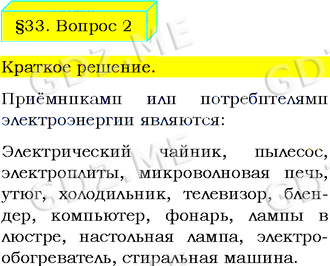 Подробный вариант решения из решебника (ГДЗ): Задание номер 2 (§33. Электрическая цепь и её составные части. Вопросы) по предмету Физика, за 8 класс, авторы учебника Пёрышкин А.В..