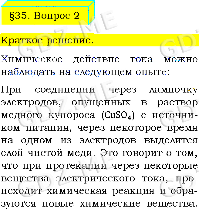 Подробный вариант решения из решебника (ГДЗ): Задание номер 2 (§35. Действия электрического тока. Вопросы) по предмету Физика, за 8 класс, авторы учебника Пёрышкин А.В..