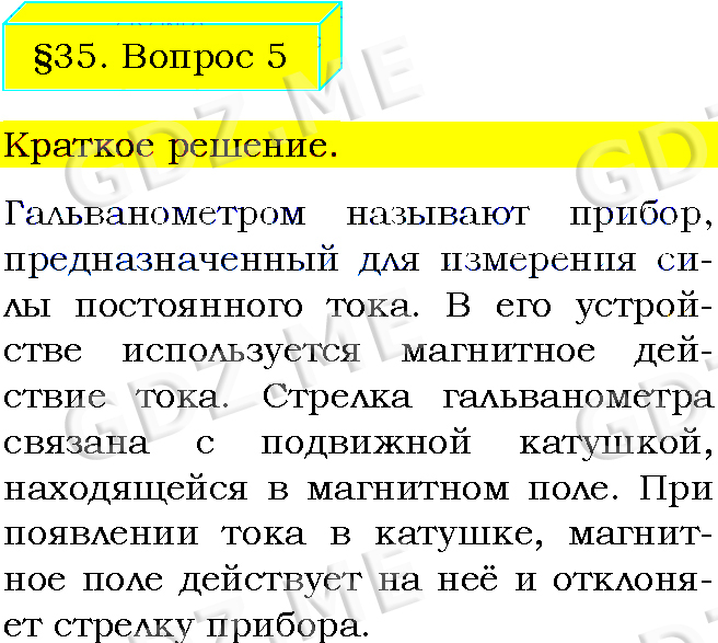 Подробный вариант решения из решебника (ГДЗ): Задание номер 5 (§35. Действия электрического тока. Вопросы) по предмету Физика, за 8 класс, авторы учебника Пёрышкин А.В..