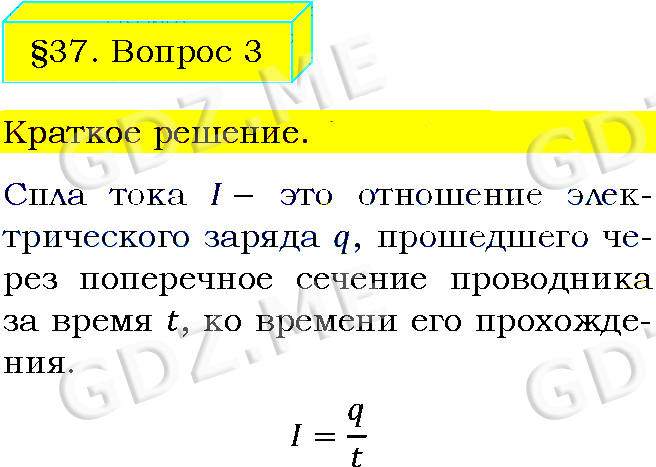 Подробный вариант решения из решебника (ГДЗ): Задание номер 3 (§37. Сила тока. Единицы силы тока. Вопросы) по предмету Физика, за 8 класс, авторы учебника Пёрышкин А.В..