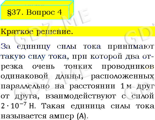 Подробный вариант решения из решебника (ГДЗ): Задание номер 4 (§37. Сила тока. Единицы силы тока. Вопросы) по предмету Физика, за 8 класс, авторы учебника Пёрышкин А.В..
