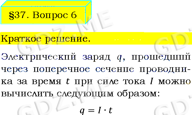 Подробный вариант решения из решебника (ГДЗ): Задание номер 6 (§37. Сила тока. Единицы силы тока. Вопросы) по предмету Физика, за 8 класс, авторы учебника Пёрышкин А.В..
