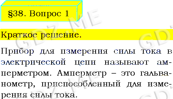 Подробный вариант решения из решебника (ГДЗ): Задание номер 1 (§38. Амперметр. Измерение силы тока. Вопросы) по предмету Физика, за 8 класс, авторы учебника Пёрышкин А.В..