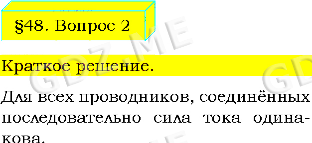 Подробный вариант решения из решебника (ГДЗ): Задание номер 2 (§48. Последовательное соединение проводников. Вопросы) по предмету Физика, за 8 класс, авторы учебника Пёрышкин А.В..