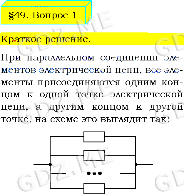 Подробный вариант решения из решебника (ГДЗ): Задание номер 1 (§49. Параллельное соединение проводников. Вопросы) по предмету Физика, за 8 класс, авторы учебника Пёрышкин А.В..