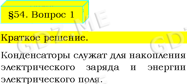 Подробный вариант решения из решебника (ГДЗ): Задание номер 1 (§54. Конденсатор. Вопросы) по предмету Физика, за 8 класс, авторы учебника Пёрышкин А.В..