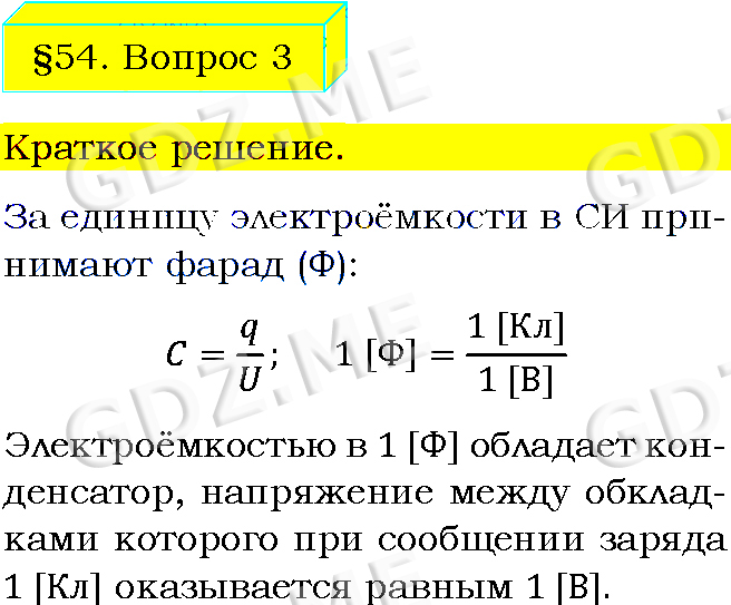 Подробный вариант решения из решебника (ГДЗ): Задание номер 3 (§54. Конденсатор. Вопросы) по предмету Физика, за 8 класс, авторы учебника Пёрышкин А.В..