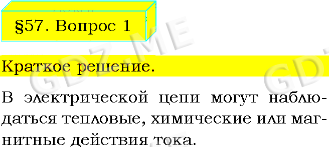 Подробный вариант решения из решебника (ГДЗ): Задание номер 1 (§57. Магнитное поле. Вопросы) по предмету Физика, за 8 класс, авторы учебника Пёрышкин А.В..