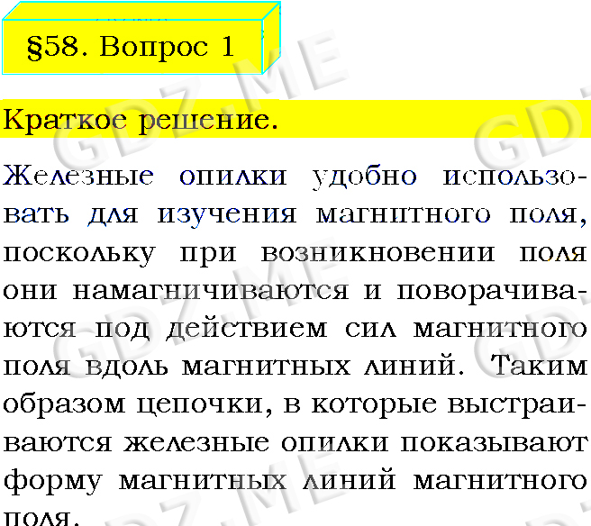 Подробный вариант решения из решебника (ГДЗ): Задание номер 1 (§58. Магнитное поле прямого тока. Магнитные линии. Вопросы) по предмету Физика, за 8 класс, авторы учебника Пёрышкин А.В..