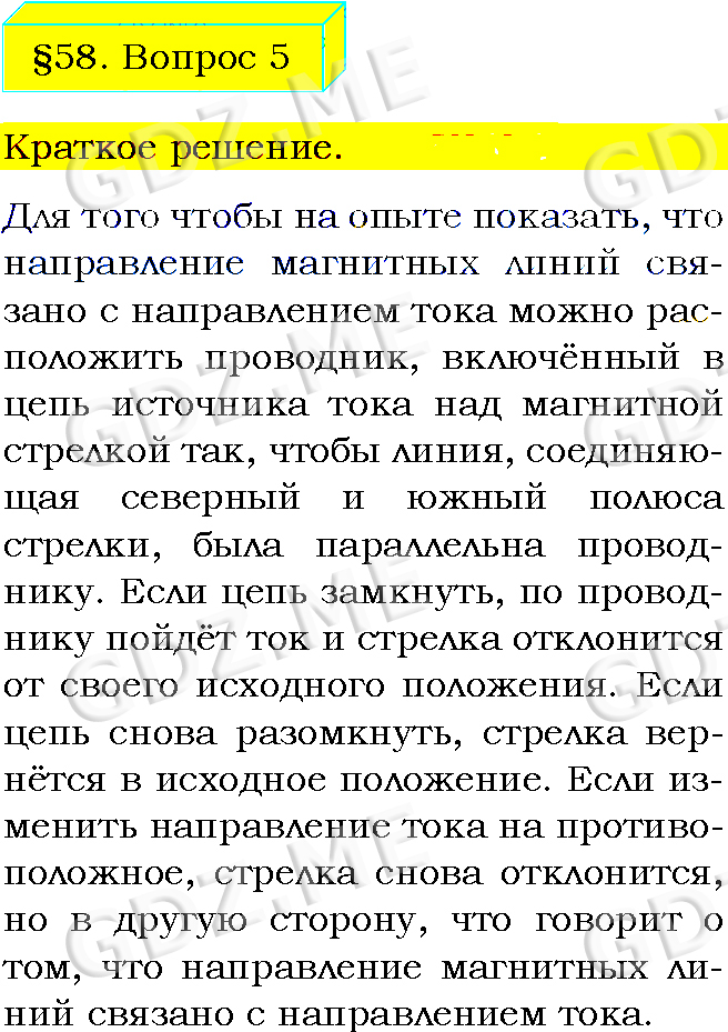 Подробный вариант решения из решебника (ГДЗ): Задание номер 5 (§58. Магнитное поле прямого тока. Магнитные линии. Вопросы) по предмету Физика, за 8 класс, авторы учебника Пёрышкин А.В..