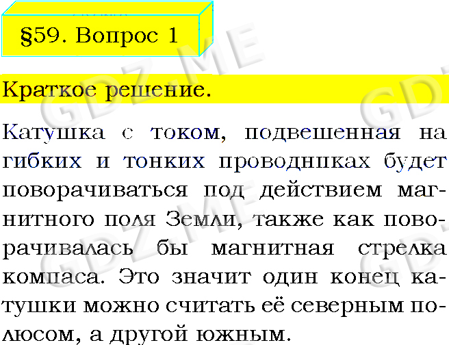 Подробный вариант решения из решебника (ГДЗ): Задание номер 1 (§59. Магнитное поле катушки с током. Электромагниты и их применение. Вопросы) по предмету Физика, за 8 класс, авторы учебника Пёрышкин А.В..