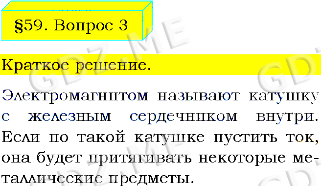Подробный вариант решения из решебника (ГДЗ): Задание номер 3 (§59. Магнитное поле катушки с током. Электромагниты и их применение. Вопросы) по предмету Физика, за 8 класс, авторы учебника Пёрышкин А.В..