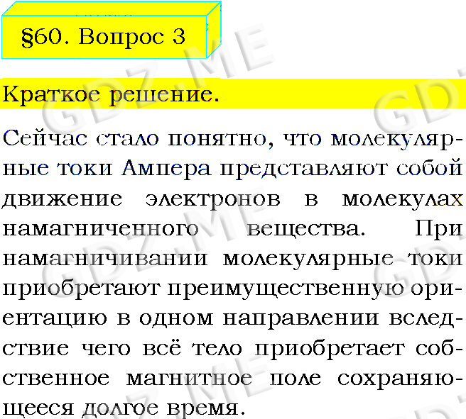 Подробный вариант решения из решебника (ГДЗ): Задание номер 3 (§60. Постоянные магниты. Магнитное поле постоянных магнитов. Вопросы) по предмету Физика, за 8 класс, авторы учебника Пёрышкин А.В..
