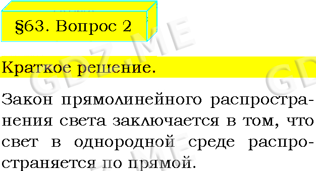 Подробный вариант решения из решебника (ГДЗ): Задание номер 2 (§63. Источники света. Распространение света. Вопросы) по предмету Физика, за 8 класс, авторы учебника Пёрышкин А.В..