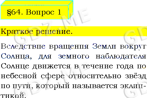 Подробный вариант решения из решебника (ГДЗ): Задание номер 1 (§64. Видимое движение светил. Вопросы) по предмету Физика, за 8 класс, авторы учебника Пёрышкин А.В..