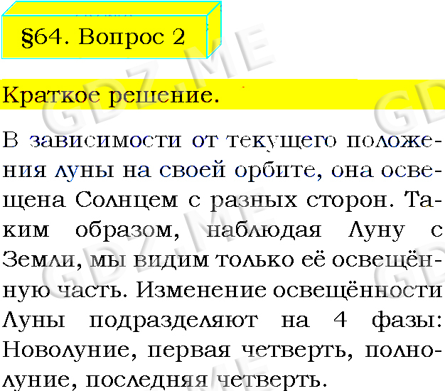 Подробный вариант решения из решебника (ГДЗ): Задание номер 2 (§64. Видимое движение светил. Вопросы) по предмету Физика, за 8 класс, авторы учебника Пёрышкин А.В..
