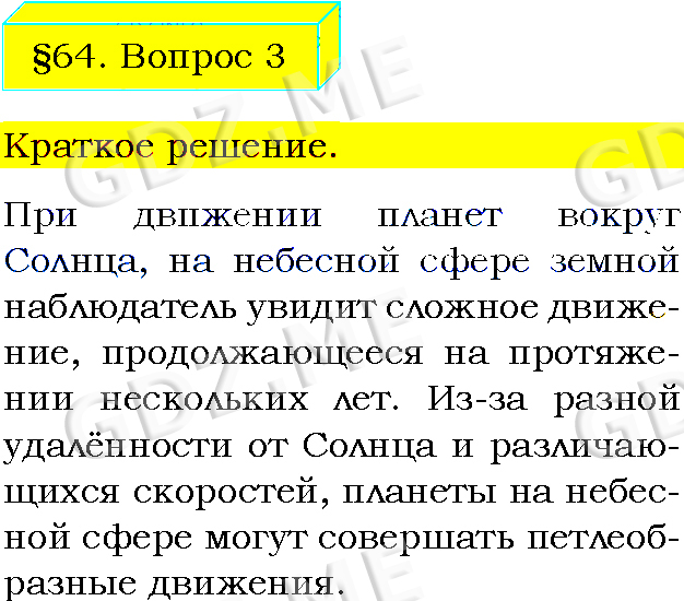 Подробный вариант решения из решебника (ГДЗ): Задание номер 3 (§64. Видимое движение светил. Вопросы) по предмету Физика, за 8 класс, авторы учебника Пёрышкин А.В..