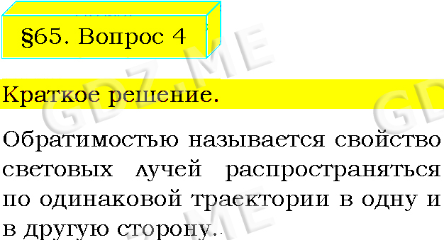 Подробный вариант решения из решебника (ГДЗ): Задание номер 4 (§65. Отражение света. Закон отражения света. Вопросы) по предмету Физика, за 8 класс, авторы учебника Пёрышкин А.В..