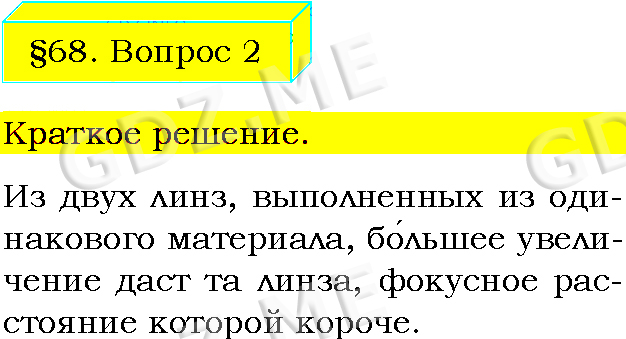 Подробный вариант решения из решебника (ГДЗ): Задание номер 2 (§68. Линзы. Оптическая сила линзы. Вопросы) по предмету Физика, за 8 класс, авторы учебника Пёрышкин А.В..